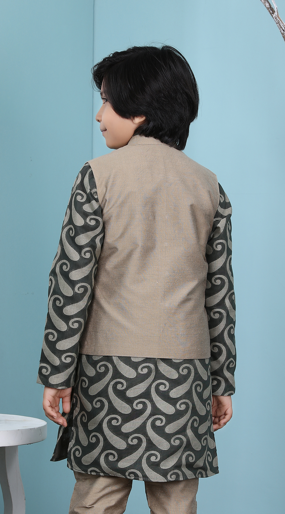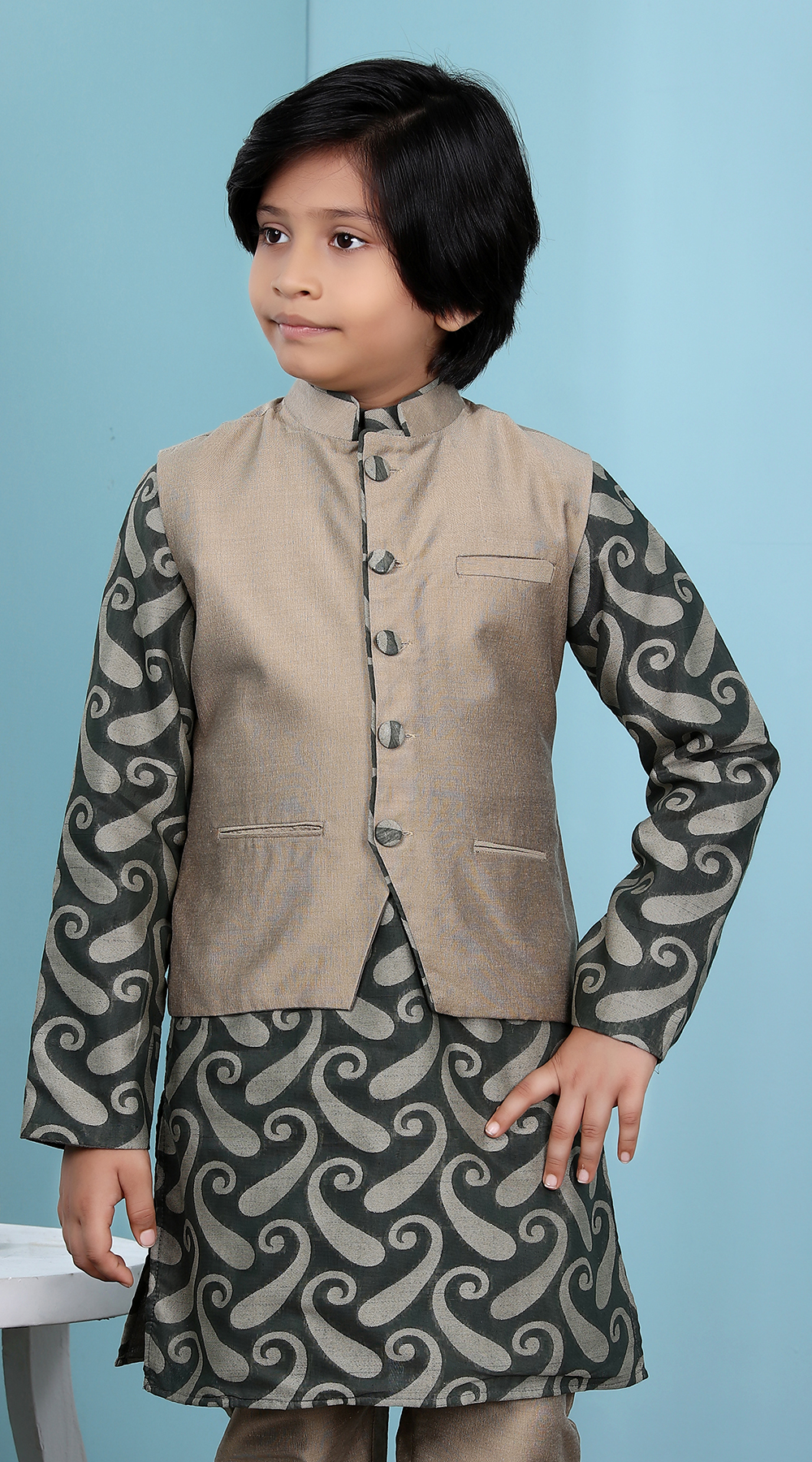 Light Brown Cotton Silk Plain Boys Bandi Jacket
