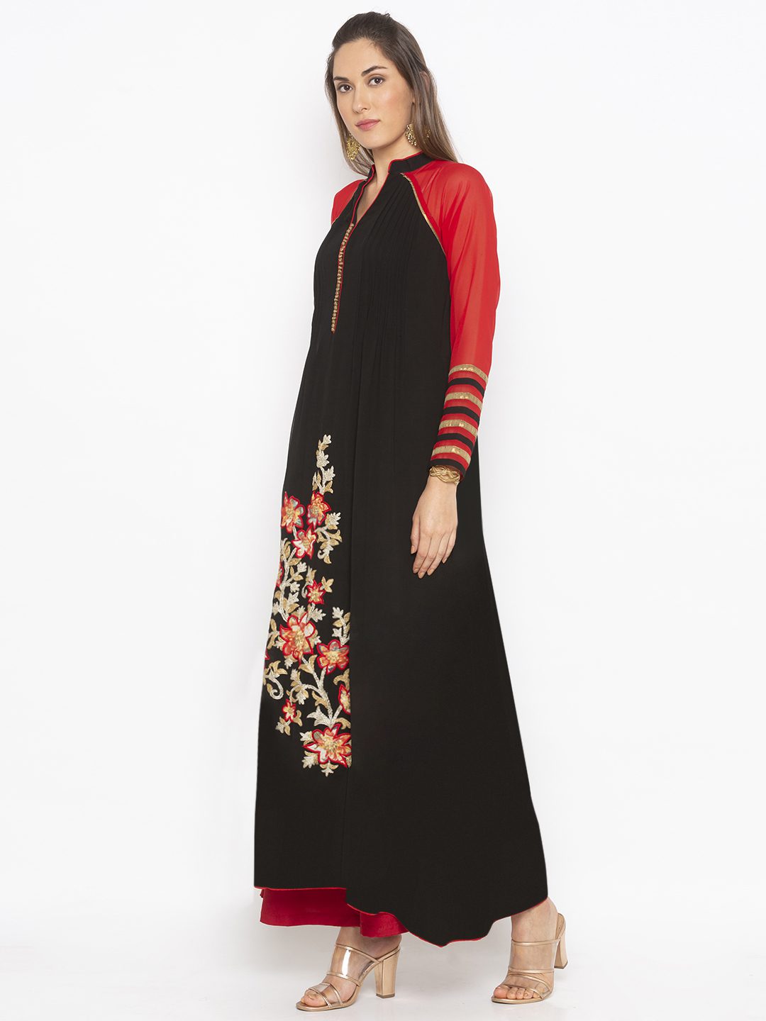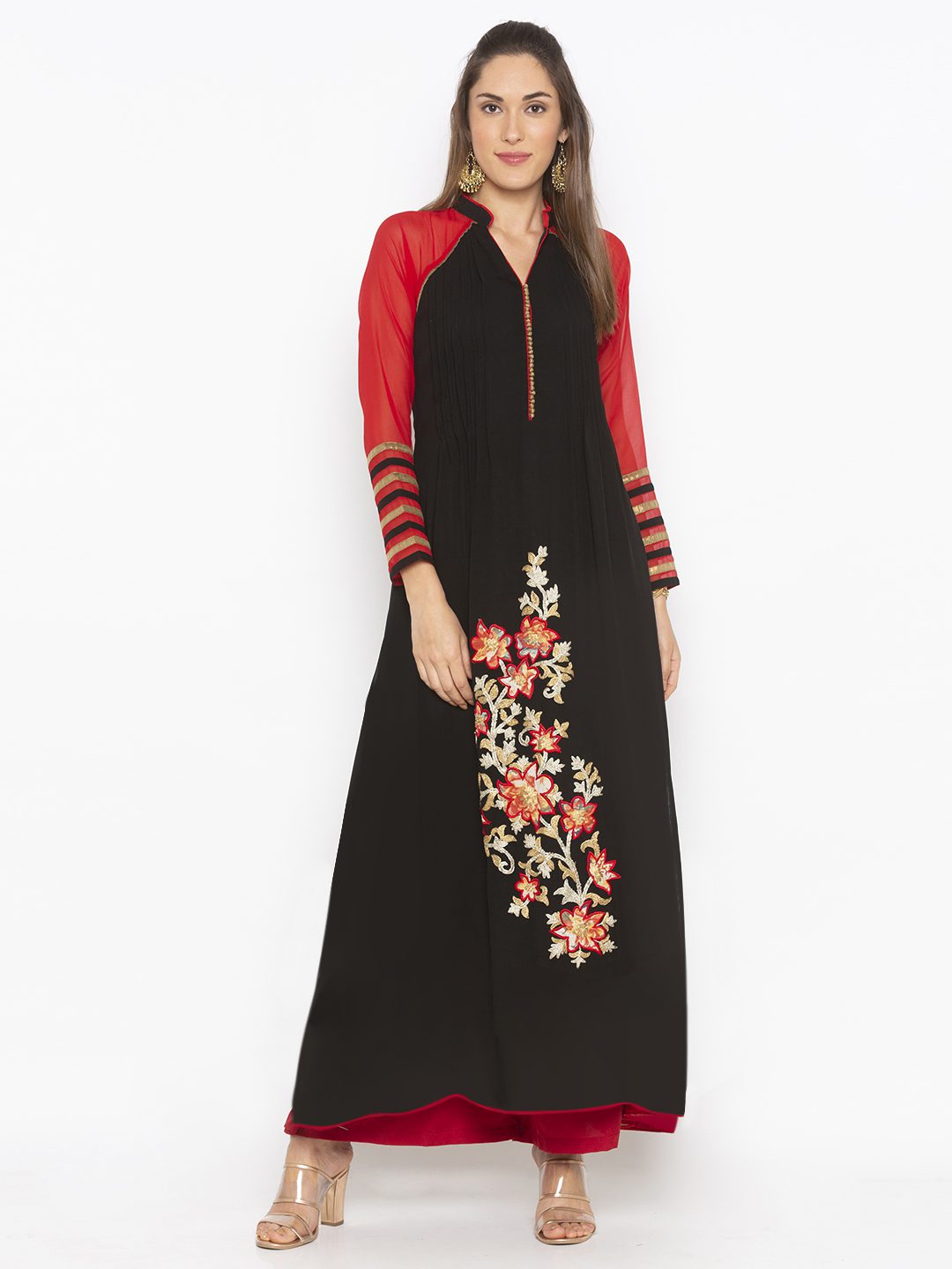 Nikhaar Creations Black Embroidered Georgette Flared Palazzo Kurta Set