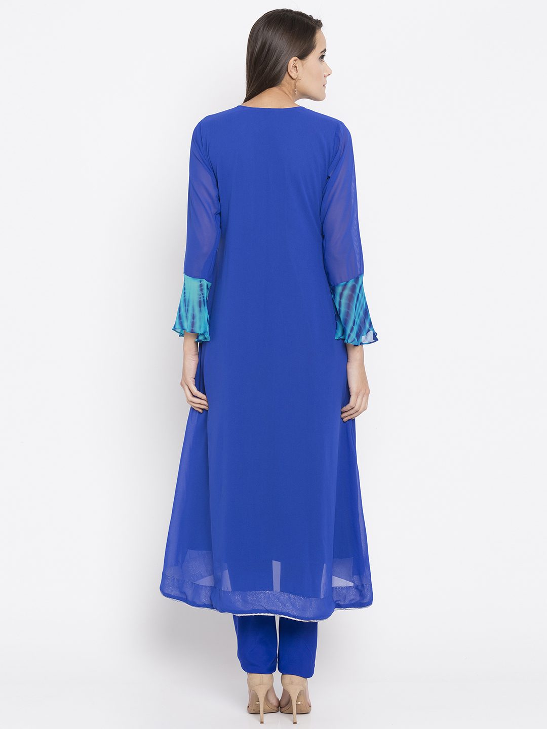 Nikhaar Creations Blue Embroidered Georgette flared Kurta