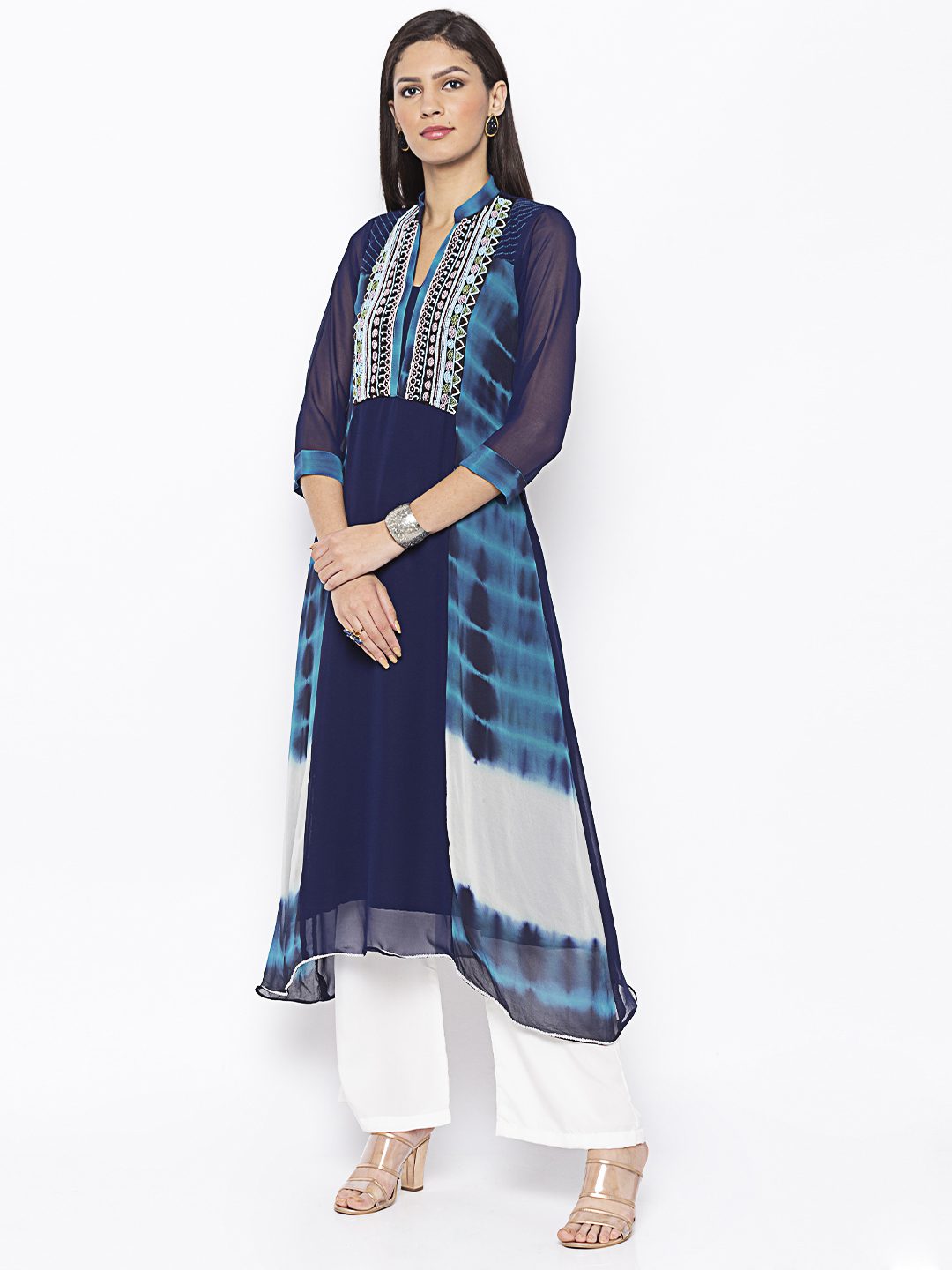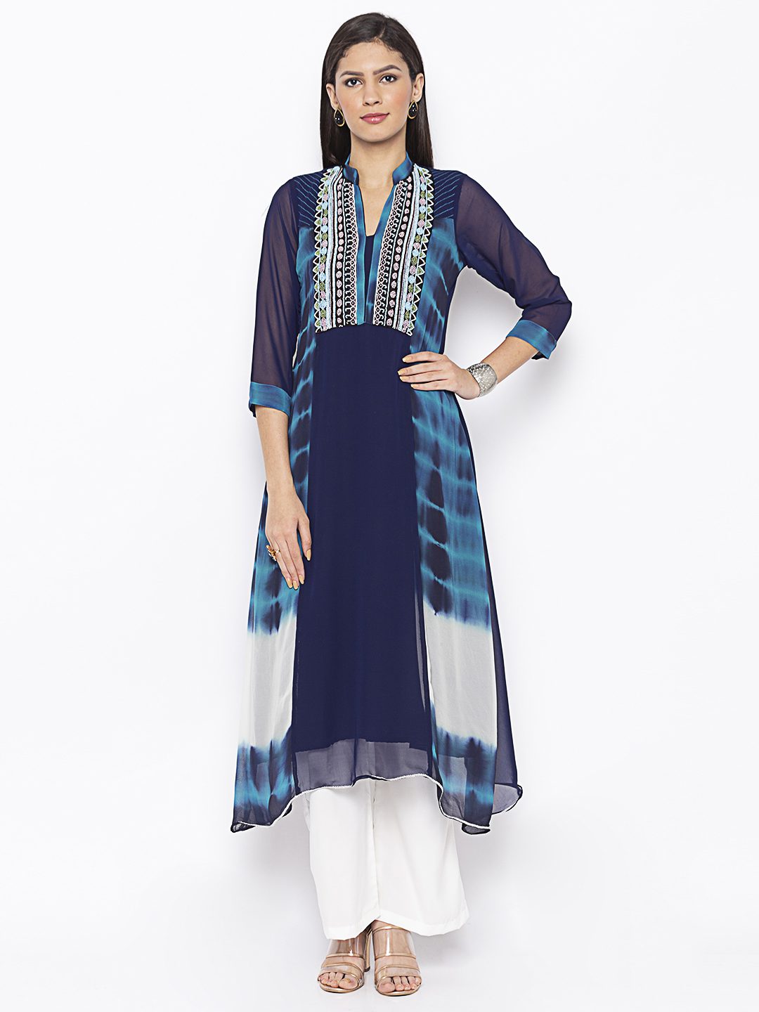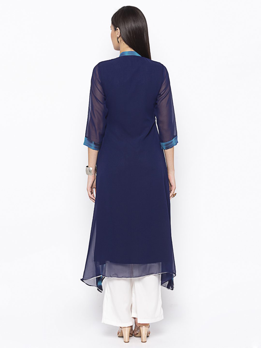 Nikhaar Creations Navy Blue Embroidered Georgette A Line Kurta