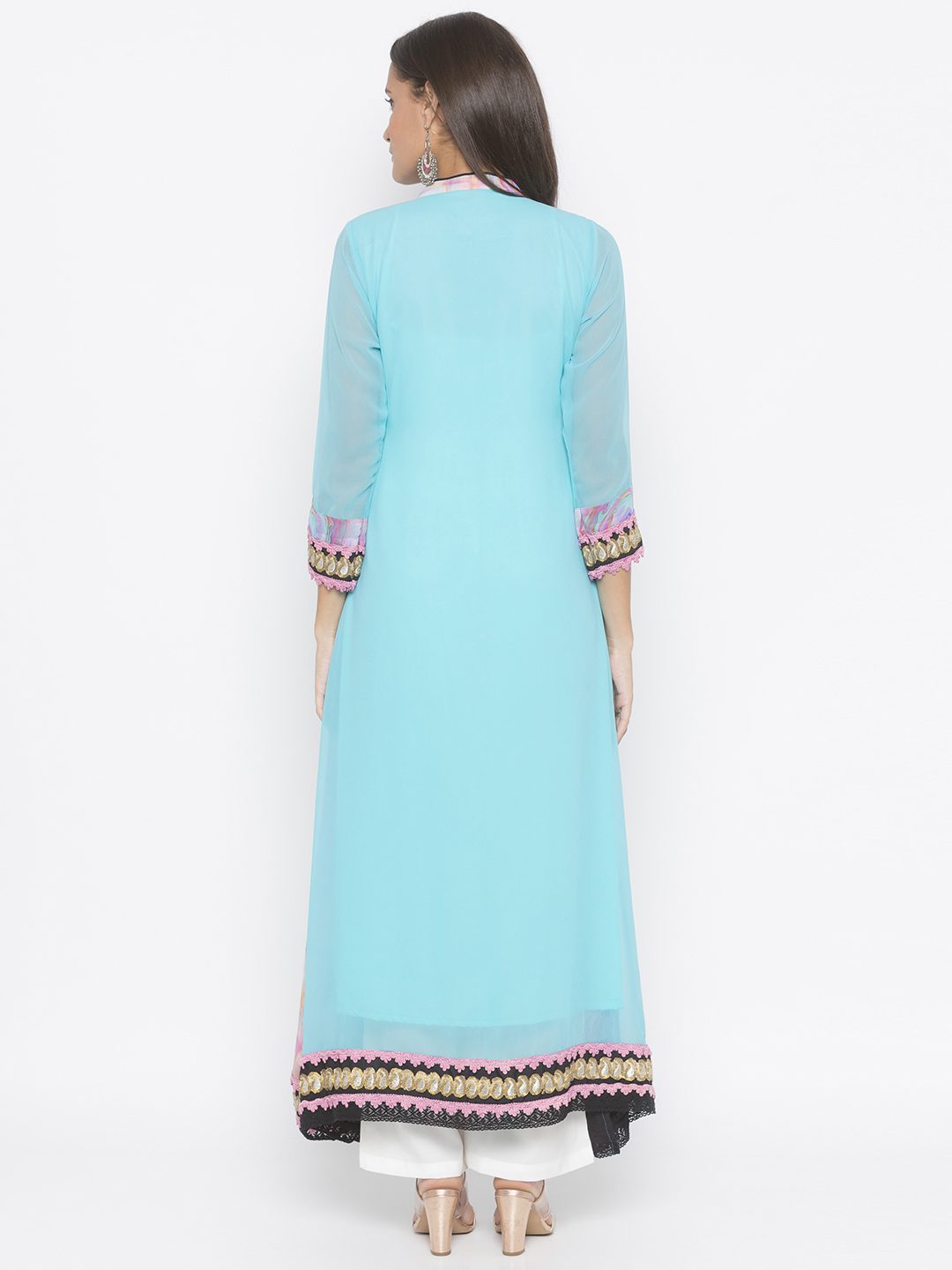 Nikhaar Creations Light Blue Embroidered Georgette Kalidar Palazzo Kurta Set