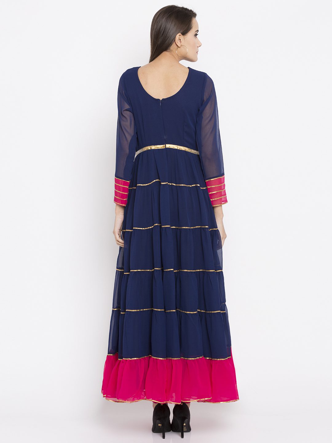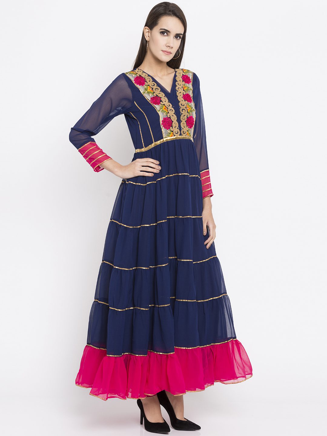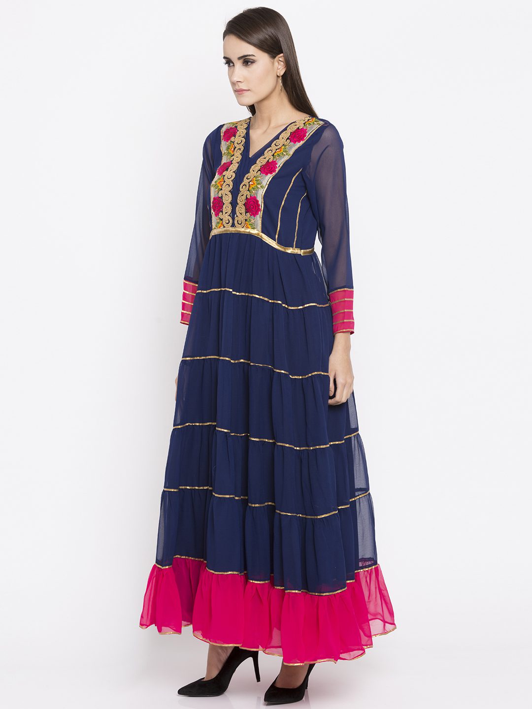 Nikhaar Creations Navy Blue Embroidered Georgette Anarkali Kurta