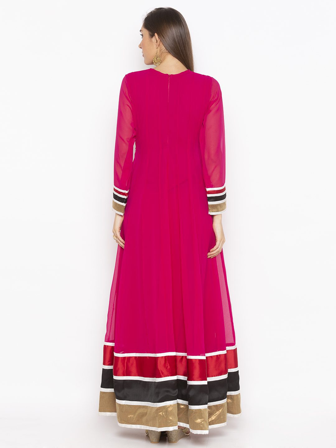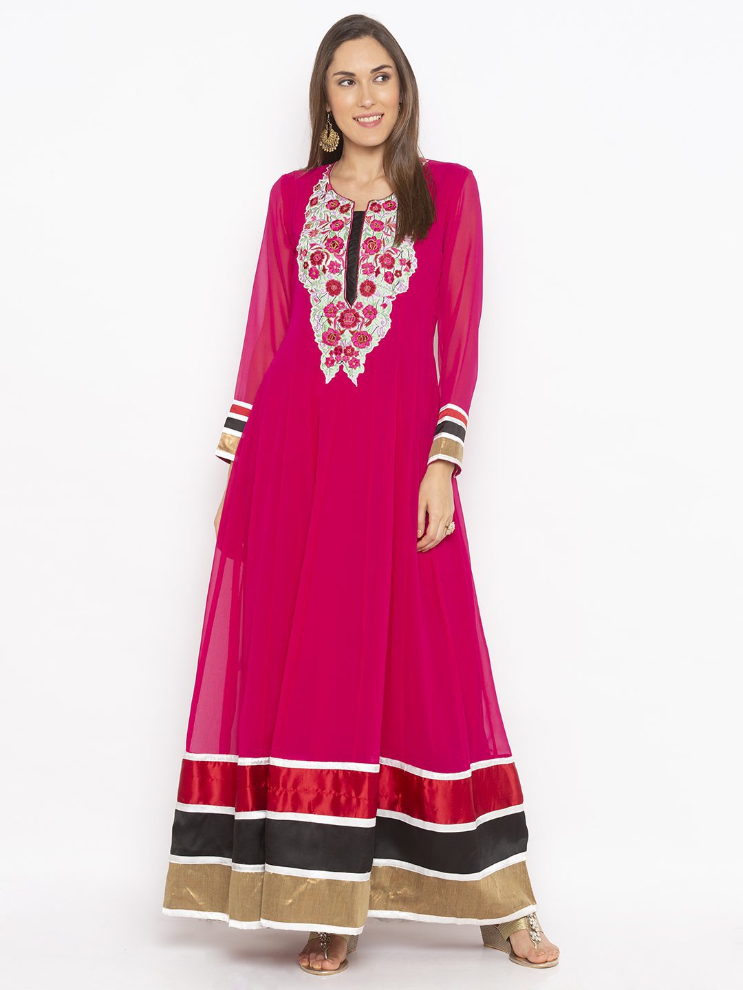 Nikhaar Creations Pink Embroidered Georgette Anarkali Kurta Set