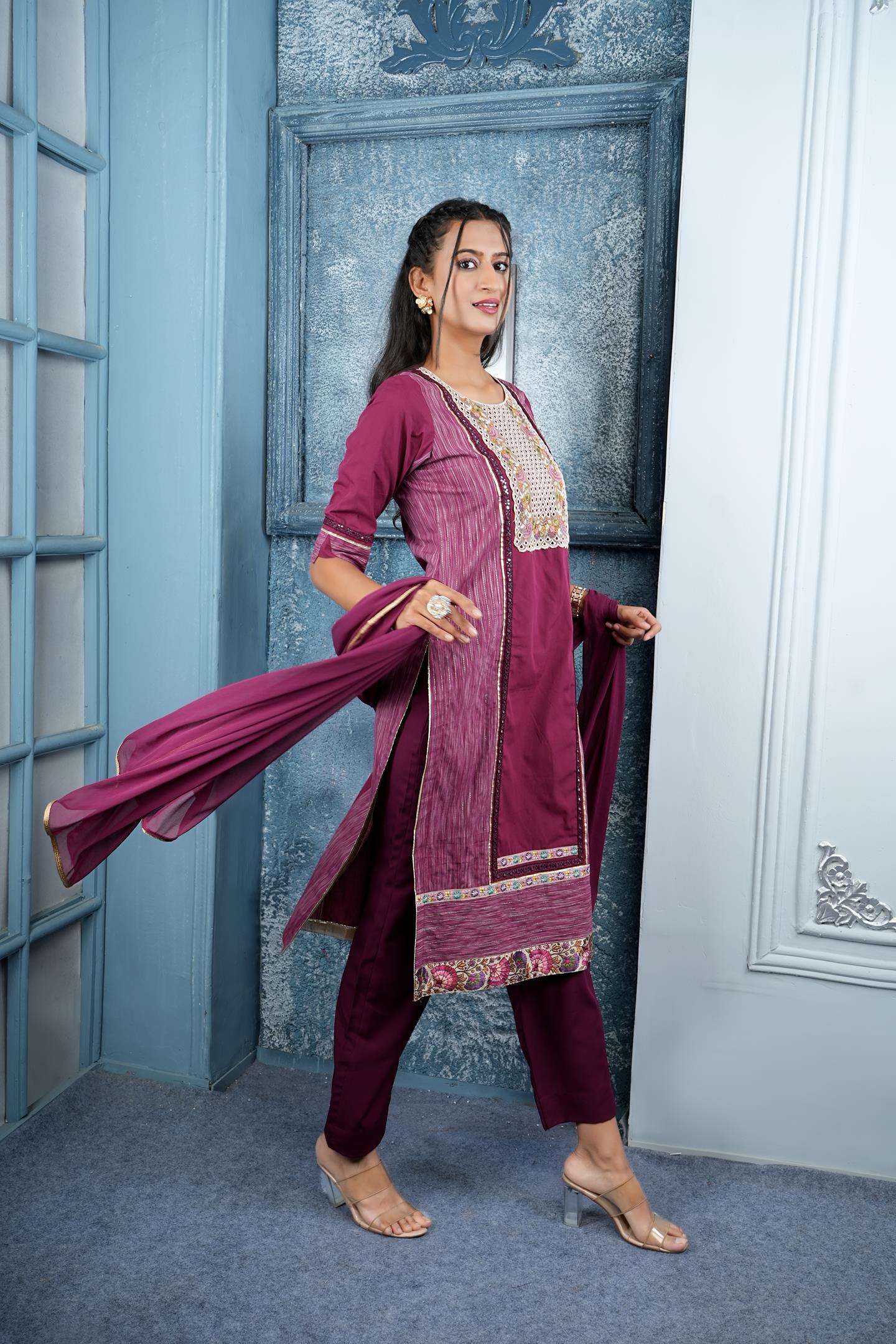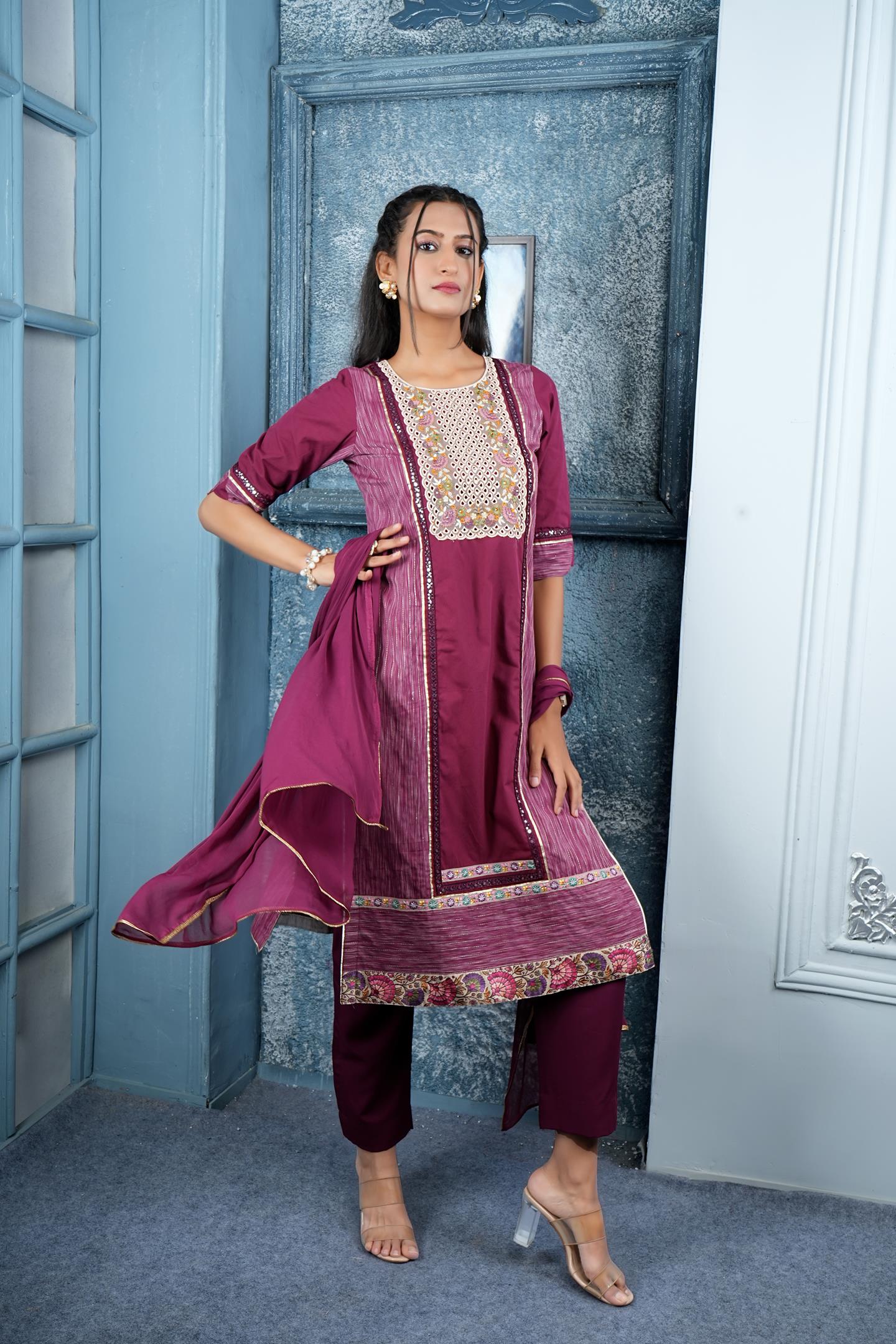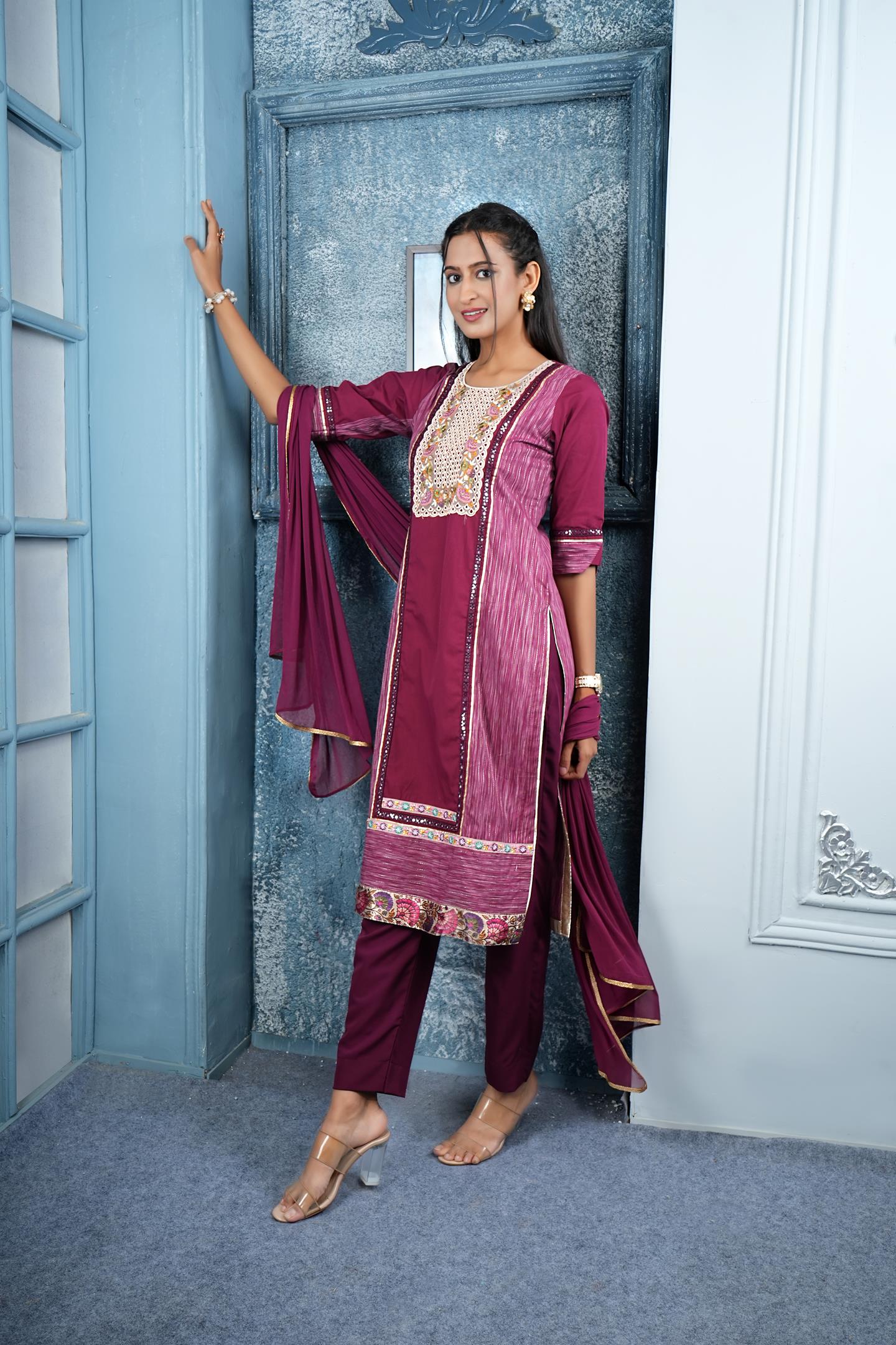 Nikhaar Maroon Embroidered Silk Stitched Trouser Kurta Dupatta Readymade Suits