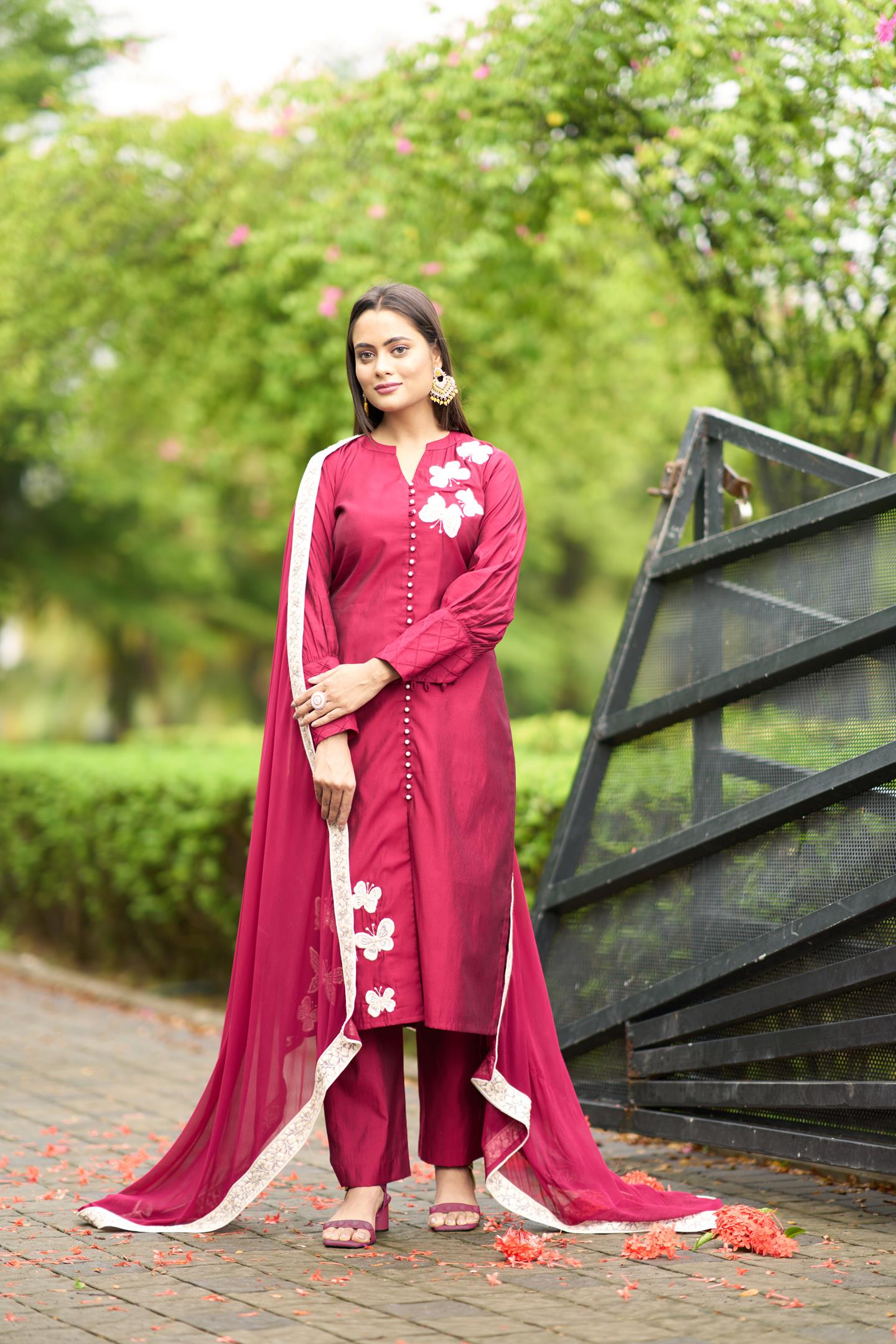 Nikhaar Pink Hand Embroidery Art Silk Stitched Straight Cut Trouser Kurta Dupatta Readymade Suits (Copy)